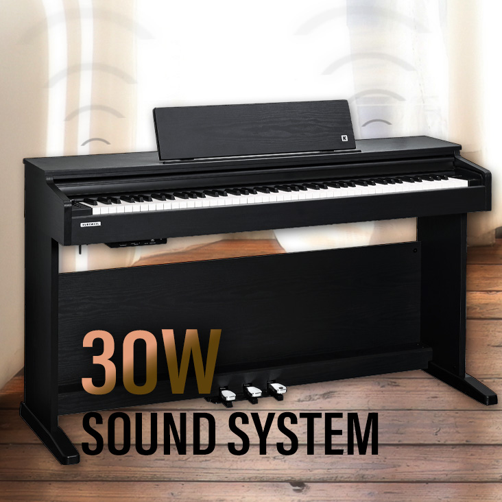 Immerse yourself in rich, high-quality sound. The M205’s built-in 30W stereo system and two specially tuned speakers fill the room with clear, full, and expressive piano tones.