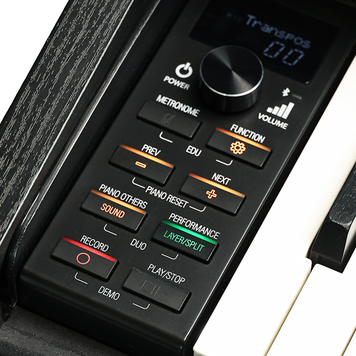 The clear, intuitive control panel makes using your piano effortless. Its sleek design puts all the essential functions right at your fingertips for instant, easy access.
