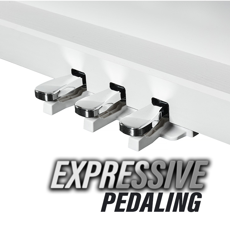 The Sustain, Sostenuto, and Soft Pedals are built-in and ready for you to explore the full expression of the piano. The Sustain pedal provides half-damper support for enhanced control and dynamic performance.